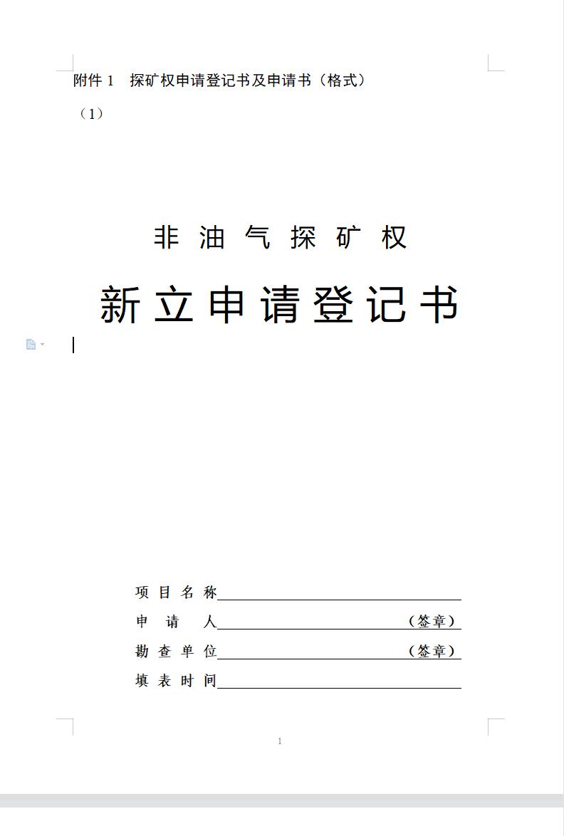 2023年探礦權(quán)申請登記書及申請書(格式)