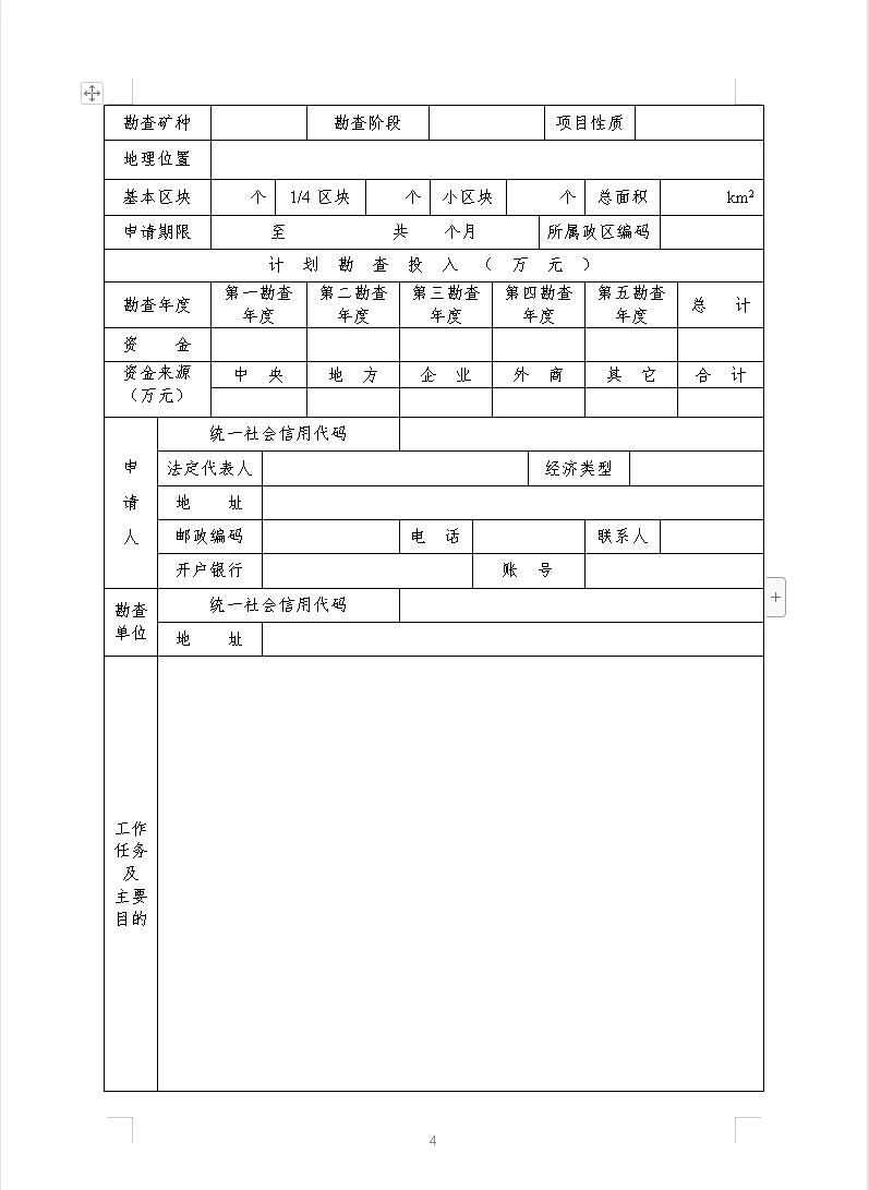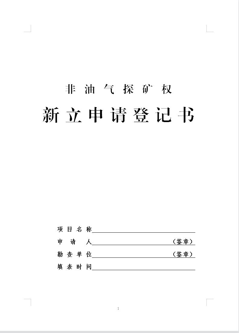 非油氣探礦權(quán)新立申請(qǐng)登記書模板下載
