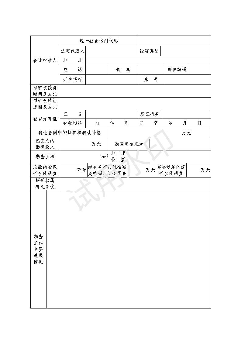 非油氣探礦權(quán)轉(zhuǎn)讓申請書模板下載