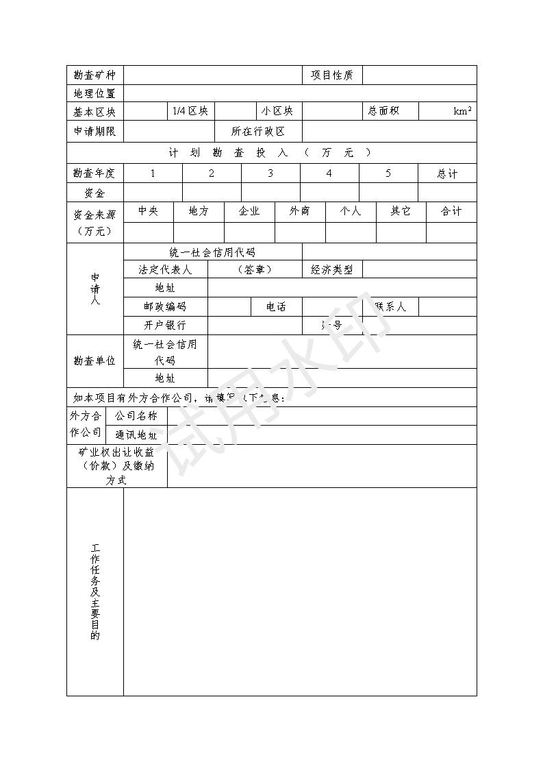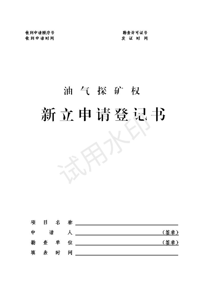 油氣探礦權(quán)新立申請(qǐng)登記書模板下載