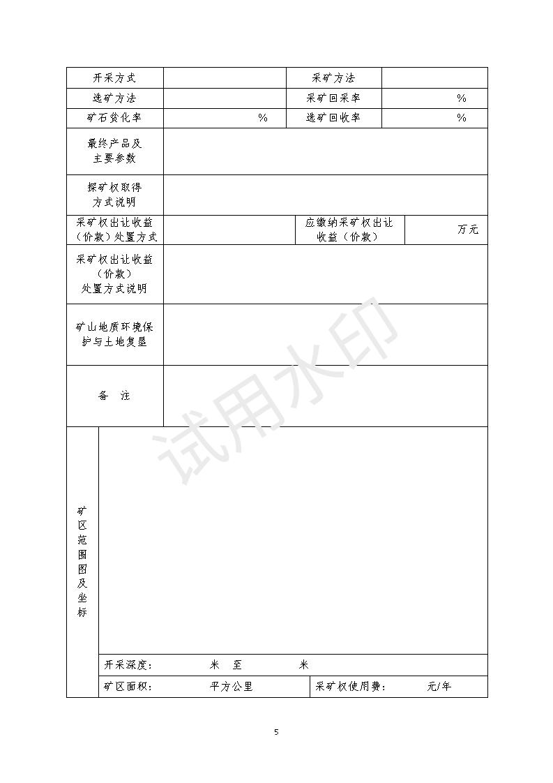 非油氣采礦權新立申請登記書模板下載