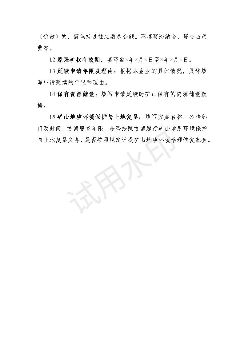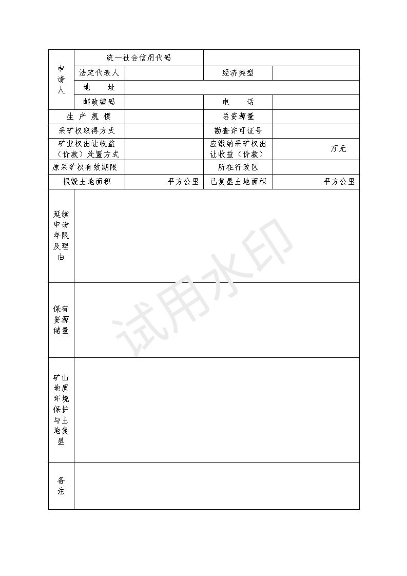 非油氣采礦權(quán)延續(xù)申請登記書模板下載