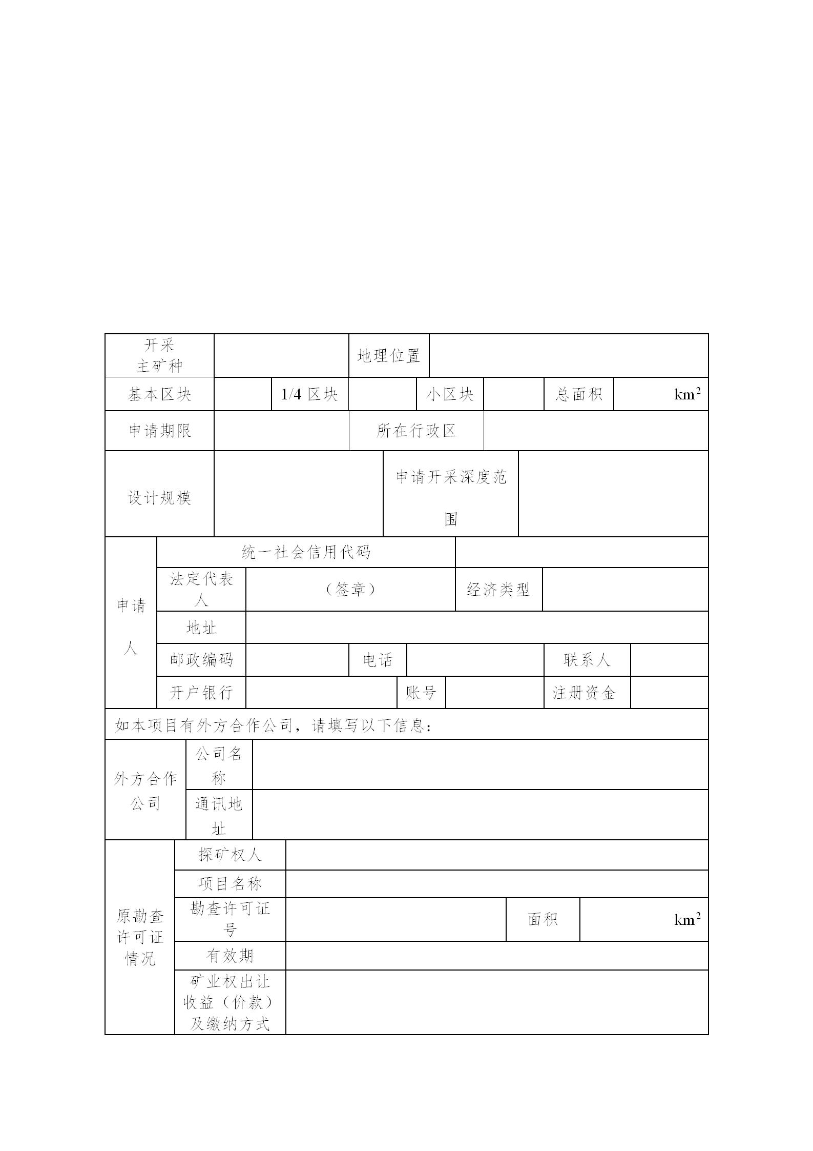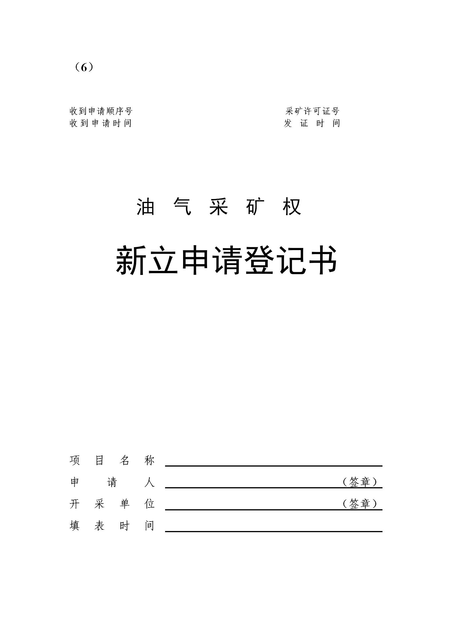 油氣采礦權(quán)新立申請(qǐng)登記書模板下載