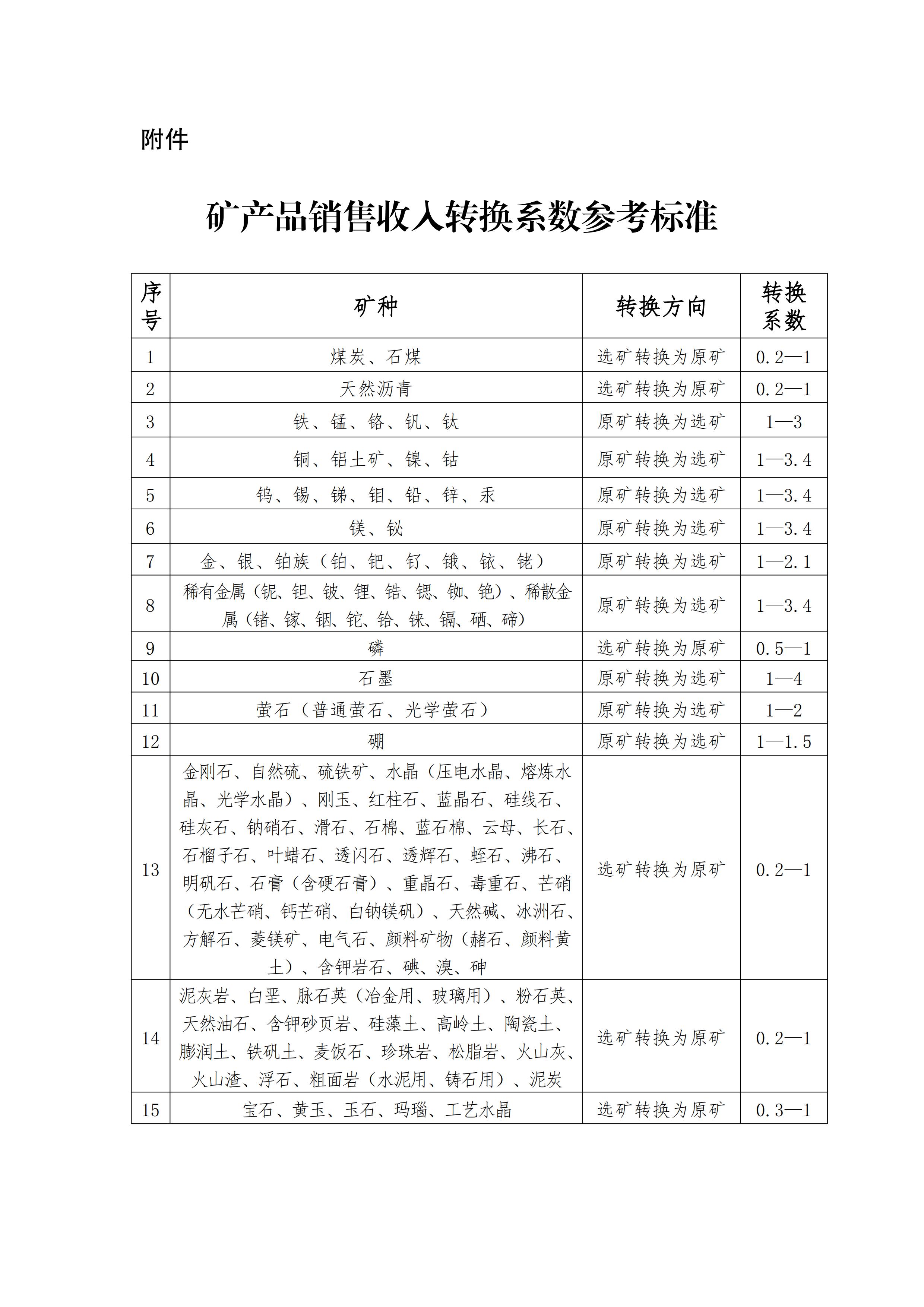 礦產(chǎn)品銷(xiāo)售收入轉(zhuǎn)換系數(shù)參考標(biāo)準(zhǔn)