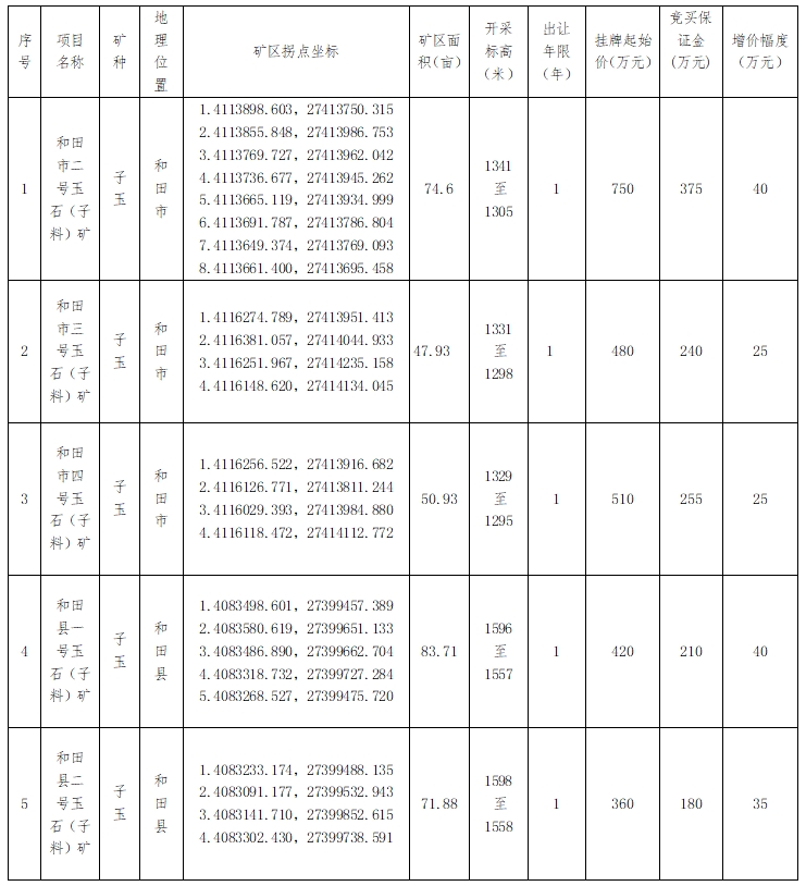 依據(jù)《中華人民共和國礦產(chǎn)資源法》《礦業(yè)權(quán)出讓交易規(guī)則》(自然資規(guī)〔2023〕1號)《新疆維吾爾自治區(qū)礦產(chǎn)資源管理若干事項暫行辦法》(新自然資規(guī)〔2021〕1號),以及《國務(wù)院辦公廳關(guān)于印發(fā)整合建立統(tǒng)一的公共資源交易平臺工作方案的通知》(國辦發(fā)〔2015〕63號)等有關(guān)法律法規(guī)和政策規(guī)定,經(jīng)和田地區(qū)資源管理委員會批準,新疆國源土地礦產(chǎn)資源交易中心接受委托,在和田地區(qū)行政服務(wù)和公共資源交易平臺組織以下采礦權(quán)公開掛牌出讓活動,現(xiàn)將有關(guān)事宜公告如下: