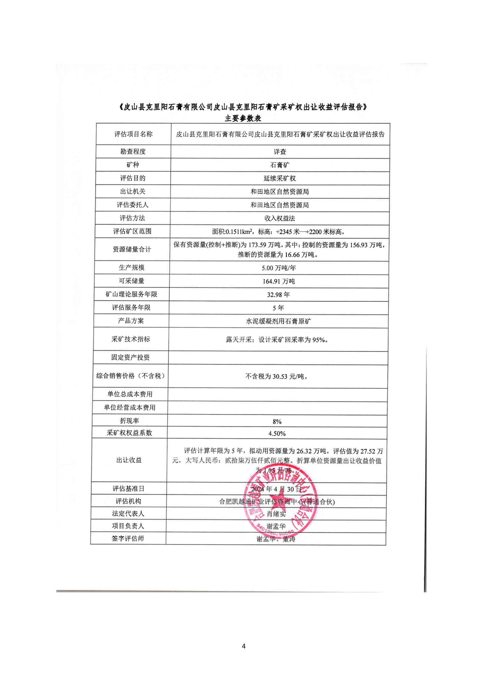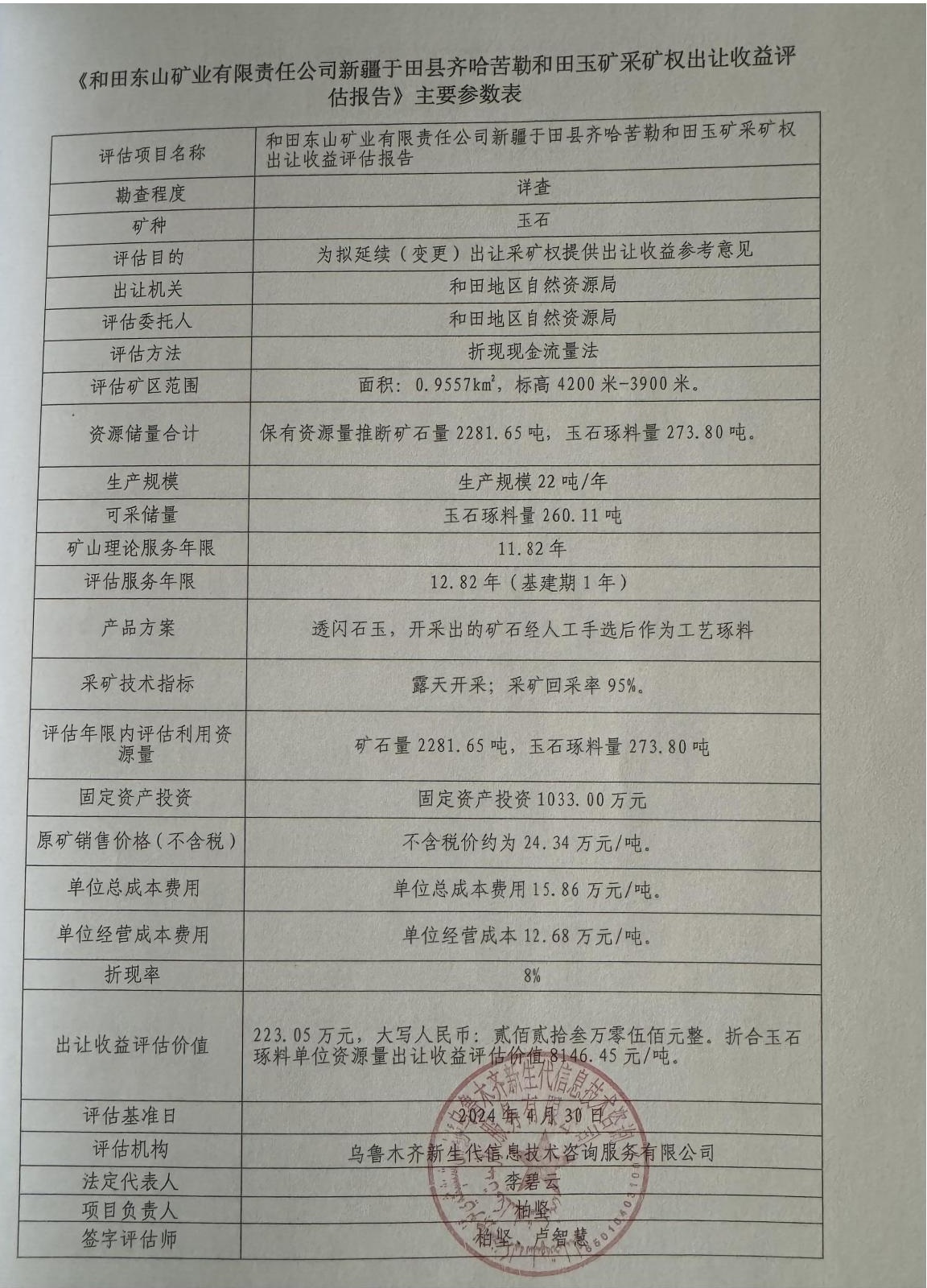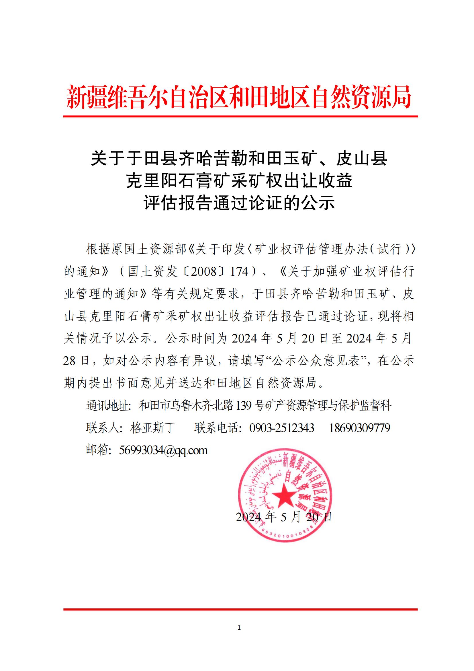 關(guān)于于田縣齊哈苦勒和田玉礦、皮山縣克里陽(yáng)石膏礦采礦權(quán)出讓收益評(píng)估報(bào)告通過(guò)論證的公示