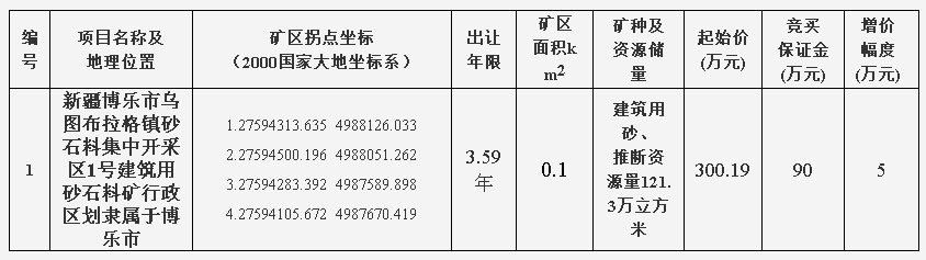 注:1、最終成交的采礦權(quán)范圍拐點(diǎn)坐標(biāo)以與博樂(lè)市自然資源局簽訂出讓合同中確定的采礦權(quán)范圍拐點(diǎn)坐標(biāo)為準(zhǔn)。