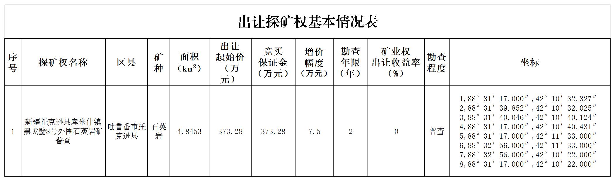 1.出讓探礦權基本情況表