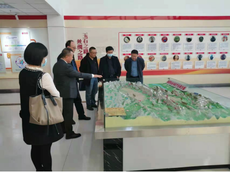 國源負(fù)責(zé)人楊杰給檢查組介紹自治區(qū)生態(tài)與礦產(chǎn)分布沙盤