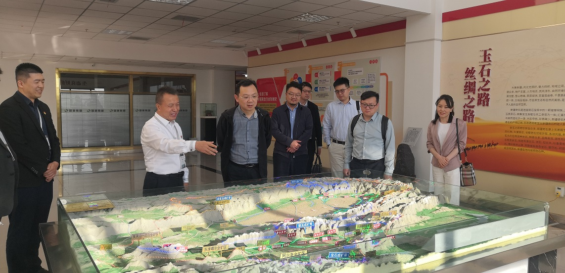 自治區(qū)礦業(yè)聯(lián)合會副會長、國源集團(tuán)黨工委書記、總裁楊 杰對調(diào)研組一行到訪表示熱烈歡迎并邀請調(diào)研組參觀了新疆生態(tài)與礦產(chǎn)分布沙盤、黃金寶玉石及各類交易礦業(yè)權(quán)項目礦石標(biāo)本。通過沙盤展示介紹了新疆重要礦產(chǎn)資源分布與生態(tài)環(huán)境的關(guān)系及勘查開發(fā)與生態(tài)保護(hù)情況。