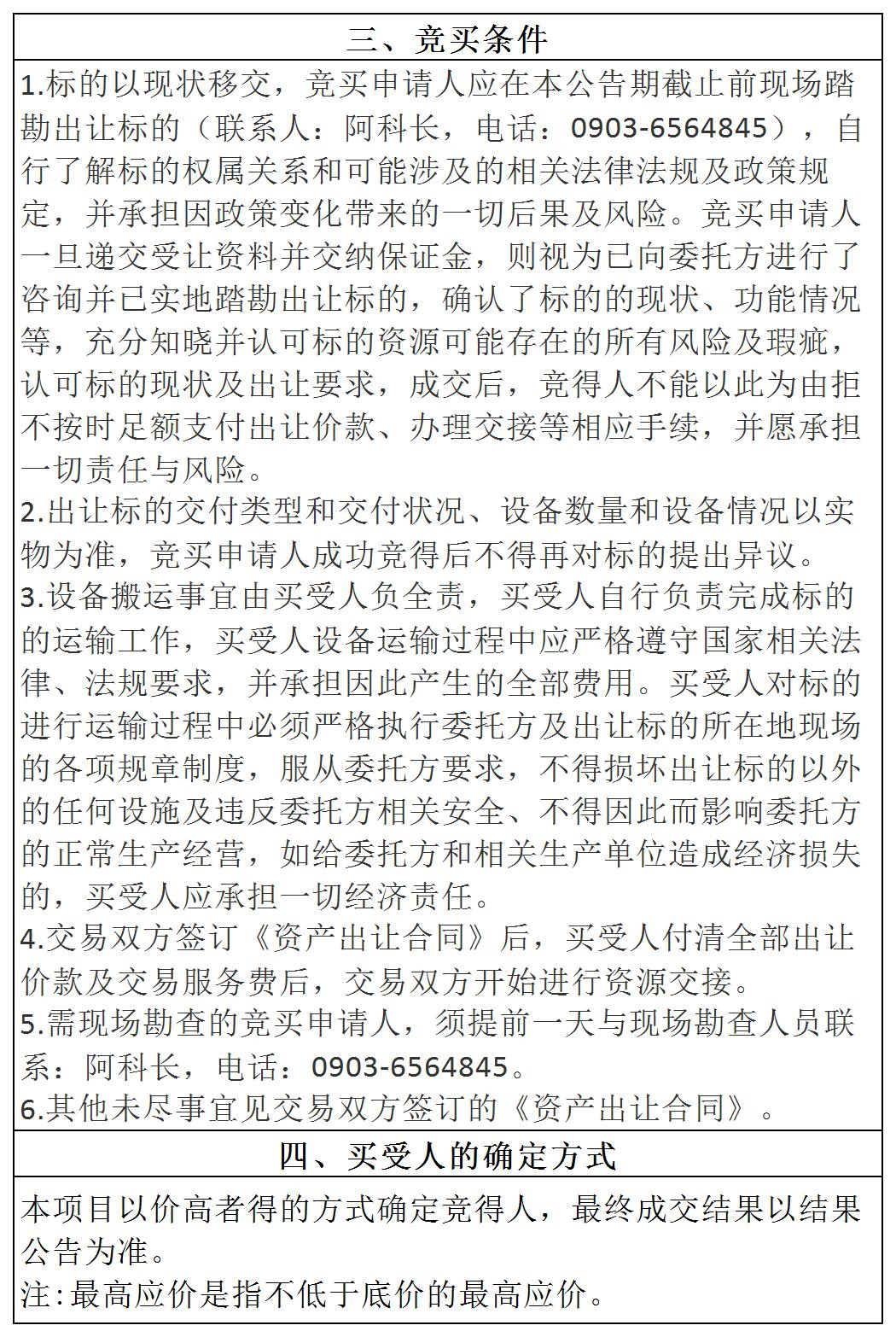 1.本項(xiàng)目采取網(wǎng)絡(luò)連續(xù)競(jìng)價(jià)、以價(jià)高者得的方式確定成交人。本項(xiàng)目所稱網(wǎng)絡(luò)連續(xù)競(jìng)價(jià)是指獲得競(jìng)價(jià)資格的意向方依據(jù)公告約定通過(guò)電子競(jìng)價(jià)系統(tǒng)進(jìn)行多次應(yīng)(報(bào))價(jià),并最終確定成交人。