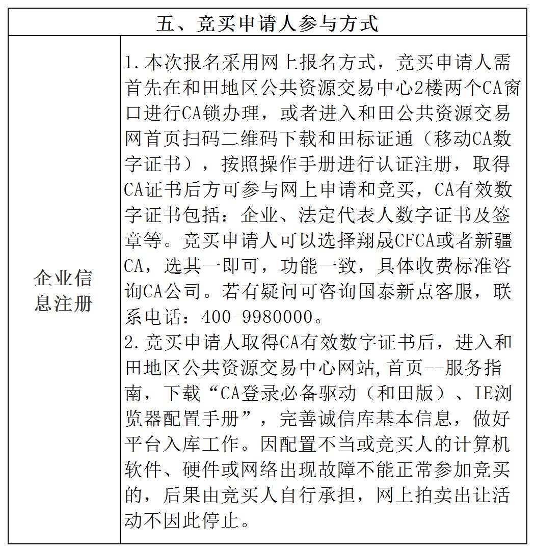 3.意向方進(jìn)入競(jìng)價(jià)系統(tǒng)進(jìn)行應(yīng)(報(bào))價(jià),即視為接受和田地區(qū)行政服務(wù)和公共資源交易中心就本項(xiàng)目發(fā)布的公告(包括附件及變更公告)、【土地、礦權(quán)、產(chǎn)權(quán)--競(jìng)買人操作手冊(cè)】及其他形式通知的全部?jī)?nèi)容并無(wú)異議。