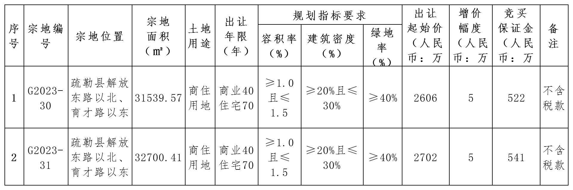 根據(jù)《中華人民共和國(guó)土地管理法》《招標(biāo)拍賣掛牌出讓國(guó)有建設(shè)用地使用權(quán)規(guī)定》(國(guó)土資源部令第39號(hào))《自治區(qū)深化公共資源交易平臺(tái)整合共享工作方案〉的通知》(新政辦函〔2019〕250號(hào))等有關(guān)法律法規(guī)及文件的規(guī)定,經(jīng)疏勒縣人民政府批準(zhǔn),疏勒縣自然資源局決定以掛牌方式出讓2(幅)地塊的國(guó)有建設(shè)用地使用權(quán)。并委托新疆國(guó)源土地礦產(chǎn)資源交易中心組織實(shí)施?,F(xiàn)將有關(guān)事項(xiàng)公告如下: