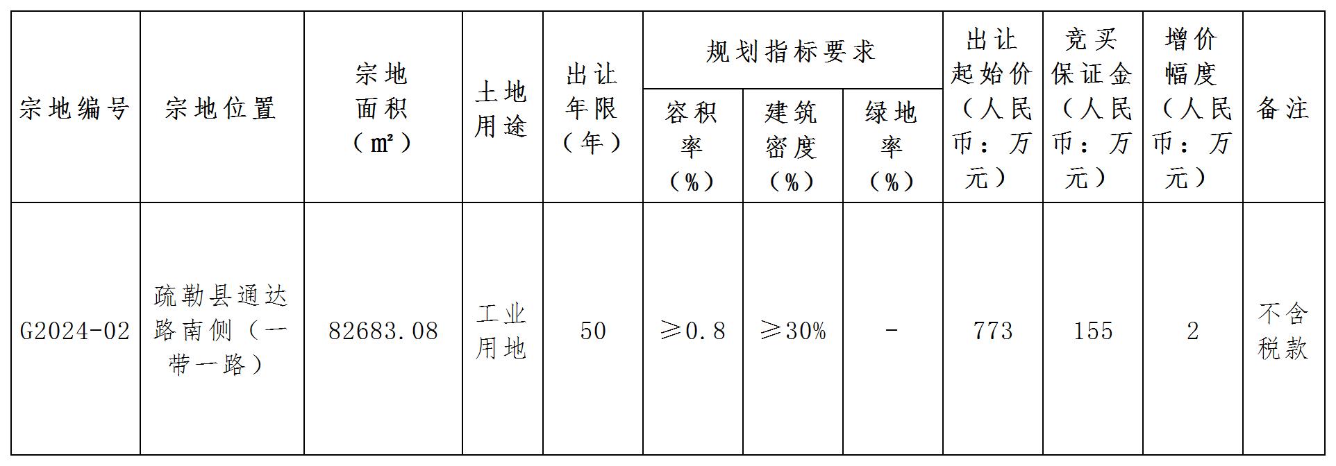 根據(jù)《中華人民共和國土地管理法》、《招標拍賣掛牌出讓國有建設用地使用權規(guī)定》(國土資源部令第39號)、《自治區(qū)深化公共資源交易平臺整合共享工作方案〉的通知》(新政辦函〔2019〕250號)等有關法律法規(guī)及文件的規(guī)定,疏勒縣人民政府批準,疏勒縣自然資源局決定以拍賣方式出讓1(幅)地塊的國有土地使用權,并委托新疆公信拍賣有限公司公開拍賣出讓,現(xiàn)將有關事項公告如下: