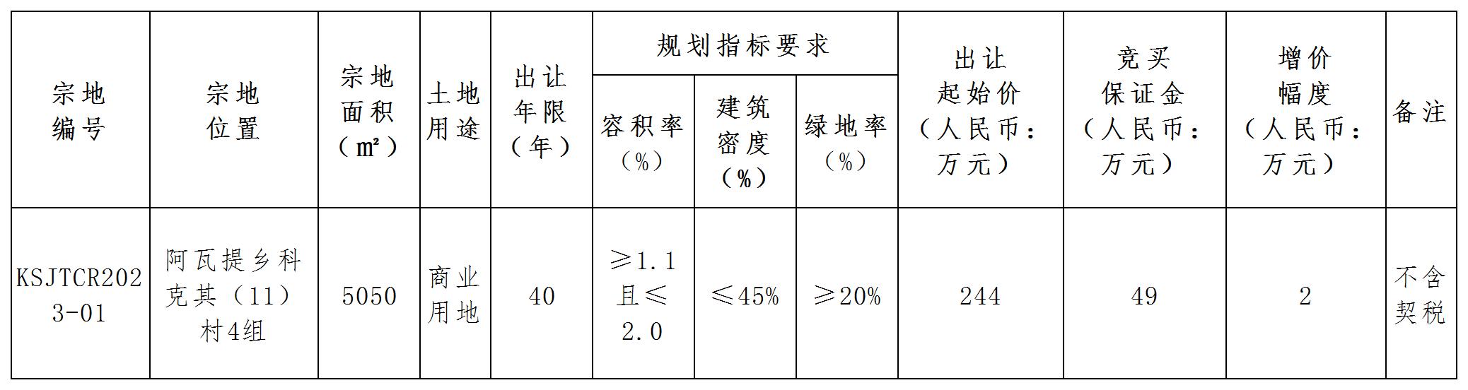 (五)完成有效報價的競買人,攜帶公章、法人章、身份證、《競買資格確認(rèn)通知書》于2024年4月3日16:00在喀什地區(qū)公共資源交易中心一樓參加掛牌會。逾期未參加的視為報價單報價默認(rèn)有效。