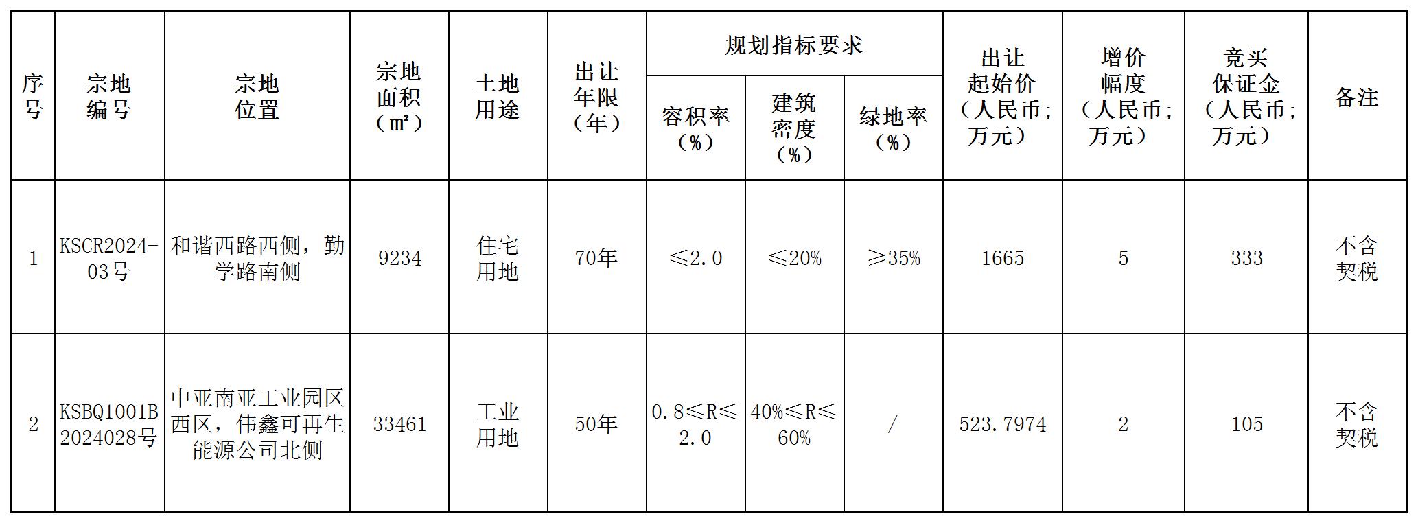備注:根據(jù)《關(guān)于貫徹落實(shí)<新疆維吾爾自治區(qū)關(guān)于促進(jìn)民營經(jīng)濟(jì)發(fā)展壯大的若干政策措施>的責(zé)任分解方案》有市場需求的工業(yè)項(xiàng)目,可實(shí)行“帶項(xiàng)目”招標(biāo)拍賣掛牌供應(yīng);根據(jù)工業(yè)項(xiàng)目產(chǎn)業(yè)布局,KSBQ1001B2024028號(hào)宗地?cái)M建工業(yè)機(jī)器人智造項(xiàng)目。