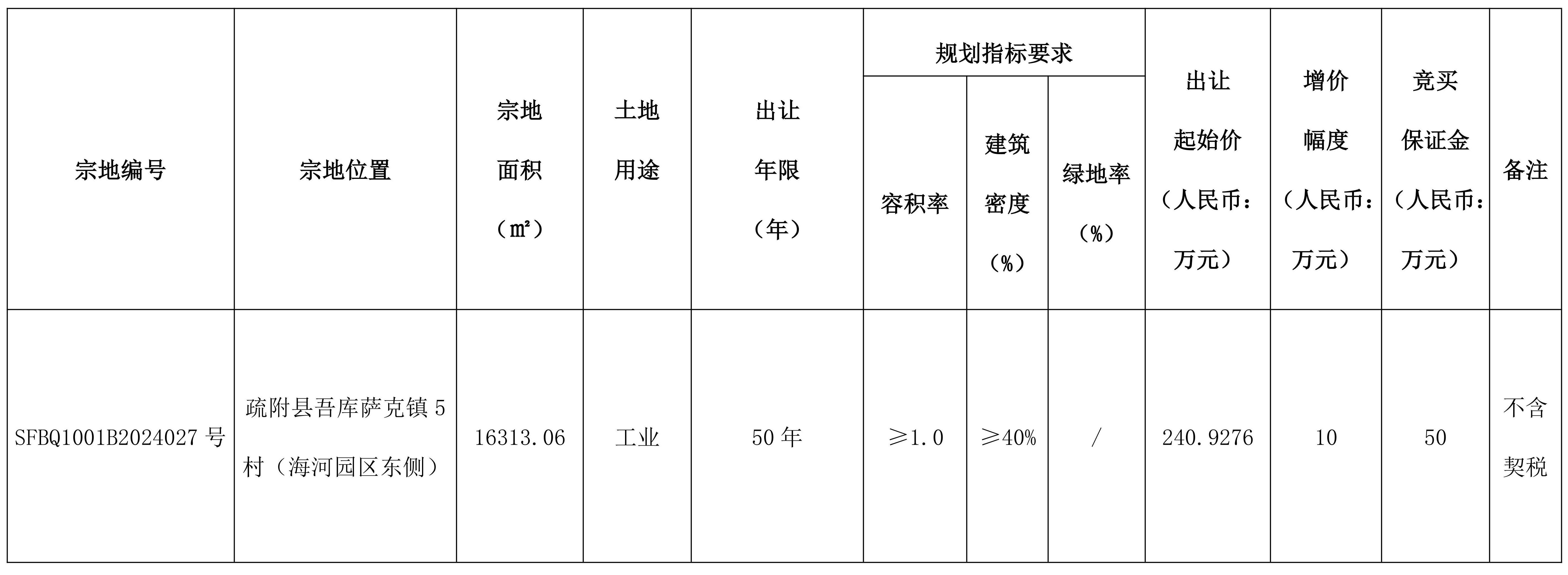 根據(jù)《中華人民共和國土地管理法》《招標(biāo)拍賣掛牌出讓國有建設(shè)用地使用權(quán)規(guī)定》(國土資源部令第39號(hào))《自治區(qū)深化公共資源交易平臺(tái)整合共享工作方案〉的通知》(新政辦函〔2019〕250號(hào))等有關(guān)法律法規(guī)及文件的規(guī)定,經(jīng)疏附縣人民政府批準(zhǔn),疏附縣自然資源局決定以掛牌方式出讓1(幅)地塊的國有建設(shè)用地使用權(quán)。并委托新疆公信拍賣有限公司公開掛牌出讓,現(xiàn)將有關(guān)事項(xiàng)公告如下:
