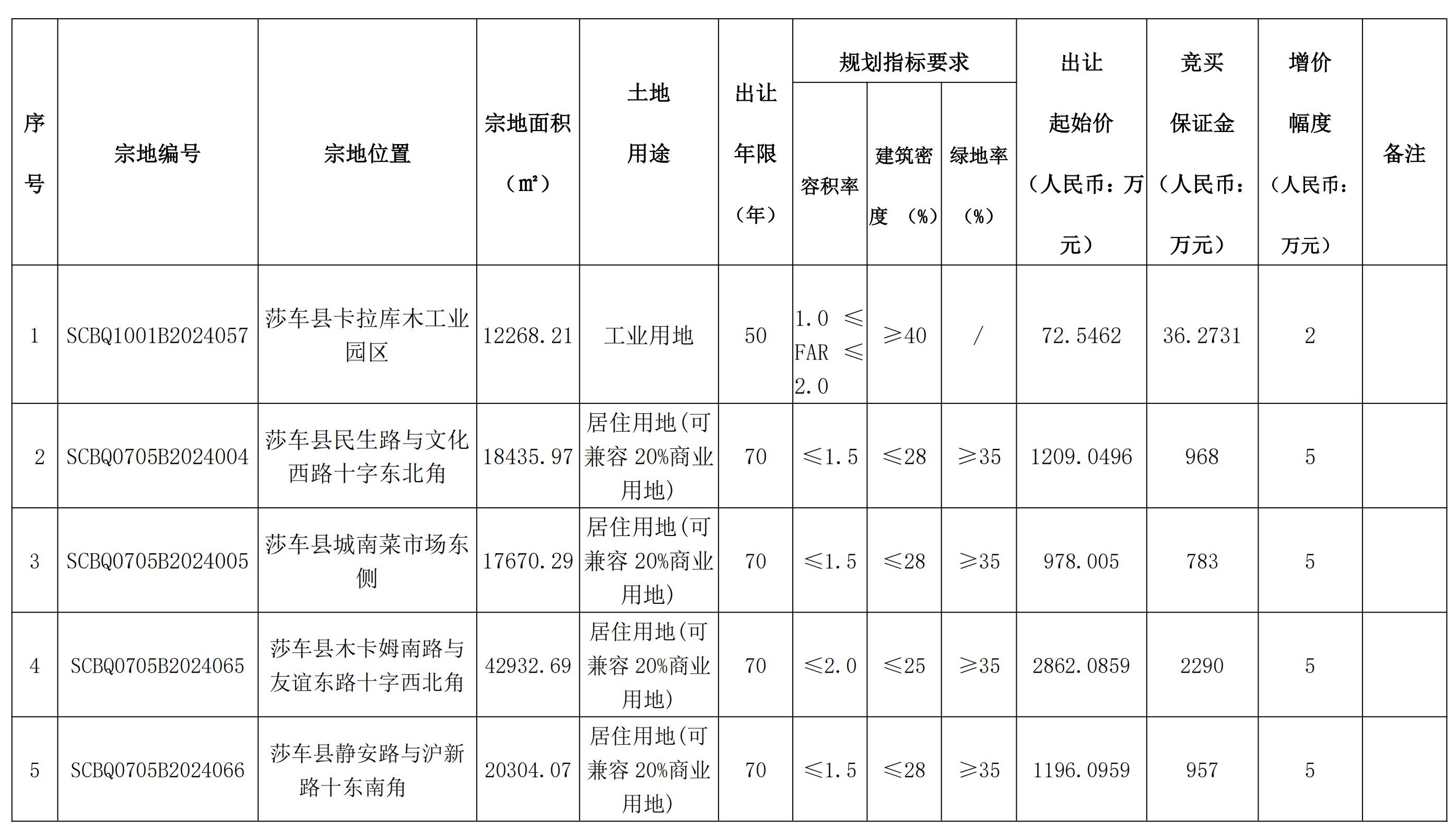 根據(jù)《中華人民共和國(guó)土地管理法》、《招標(biāo)拍賣掛牌出讓國(guó)有建設(shè)用地使用權(quán)規(guī)定》(國(guó)土資源部令第39號(hào))、《自治區(qū)深化公共資源交易平臺(tái)整合共享工作方案〉的通知》(新政辦函〔2019〕250號(hào))等有關(guān)法律法規(guī)及文件的規(guī)定,經(jīng)莎車縣人民政府批準(zhǔn),莎車縣自然資源局決定以掛牌方式出讓5(幅)地塊的國(guó)有建設(shè)用地使用權(quán)。并委托新疆國(guó)源土地礦產(chǎn)資源交易中心、新疆國(guó)正拍賣有限公司、新疆公信拍賣有限公司組織實(shí)施?,F(xiàn)將有關(guān)事項(xiàng)公告如下: