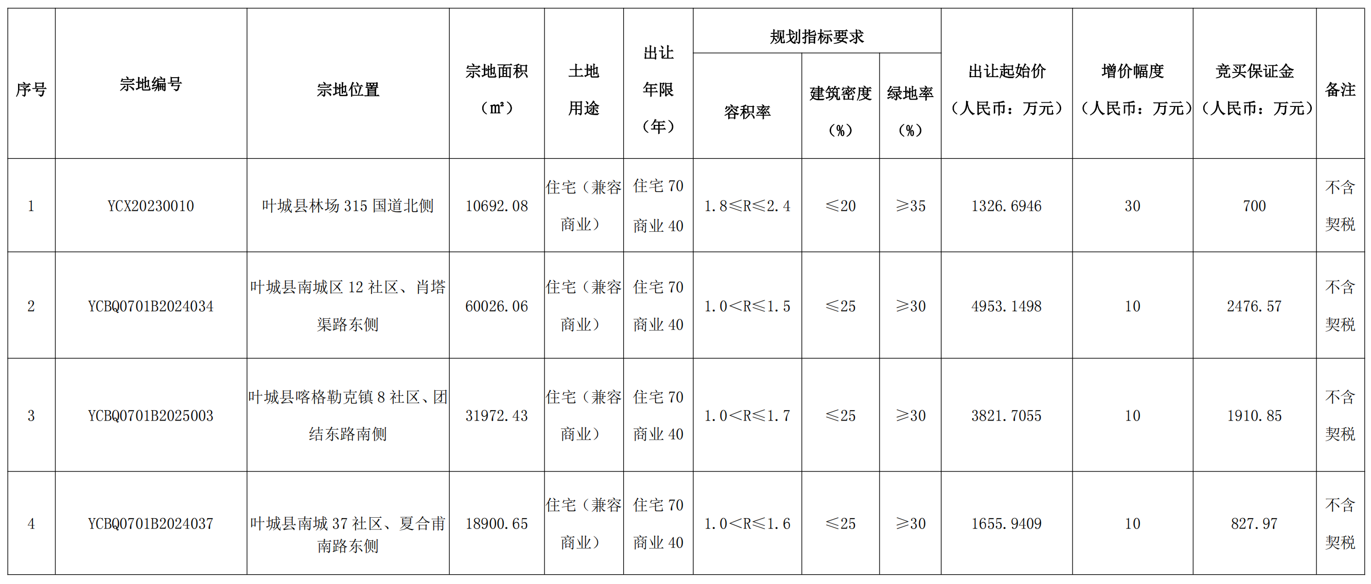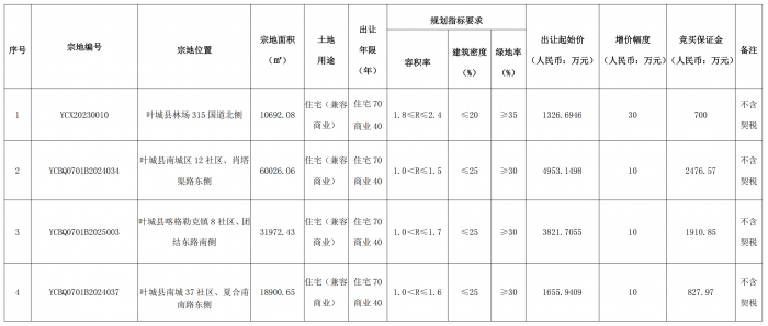 備注:YCBQ0701B2024034號地塊應(yīng)配建新建住房45700平方米、商業(yè)9900平方米作為政府安置住房。