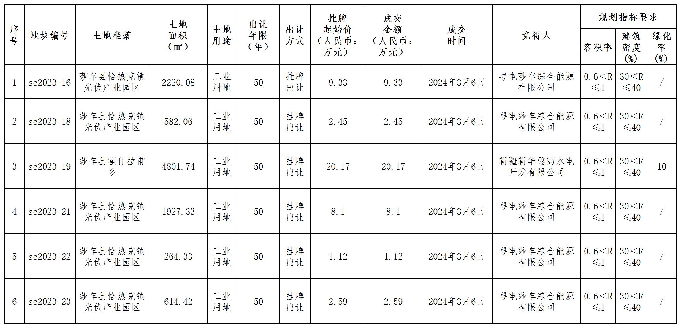 莎車縣自然資源局國有建設(shè)用地使用權(quán)掛牌出讓成交結(jié)果公示