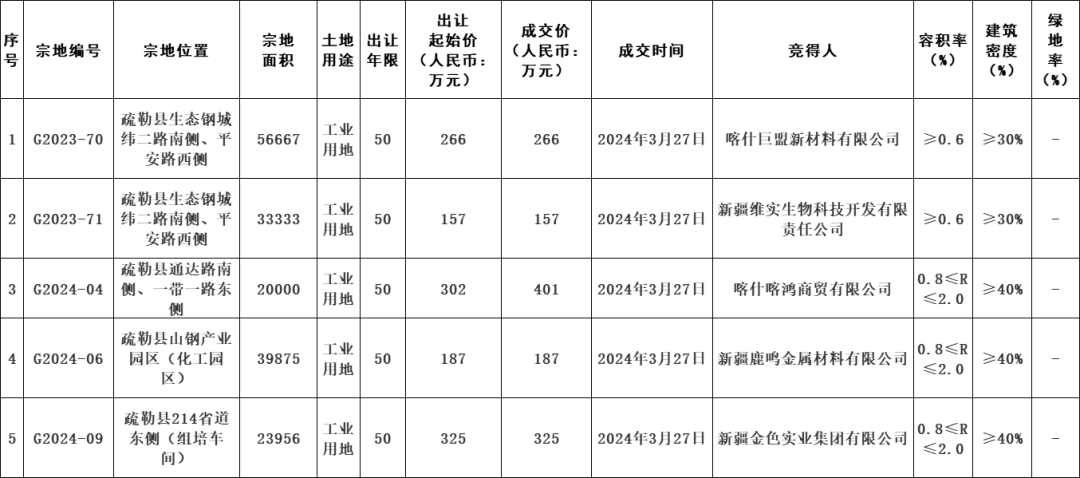 疏勒縣自然資源局國有建設用地使用權成交結果公示