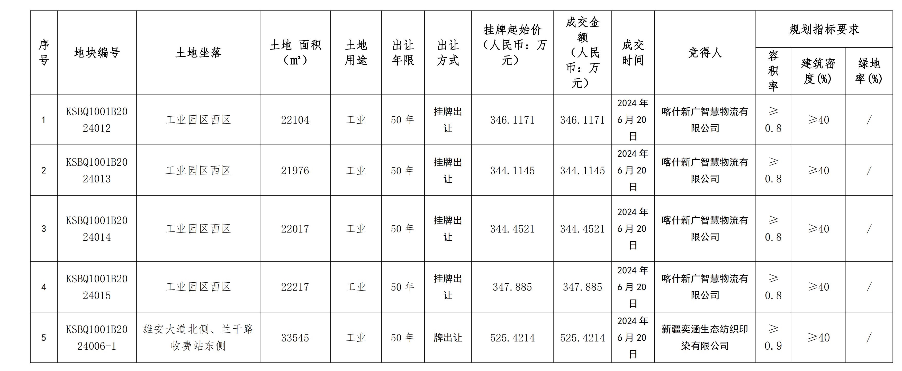 喀什市國(guó)有建設(shè)用地使用權(quán)掛牌出讓成交結(jié)果公示