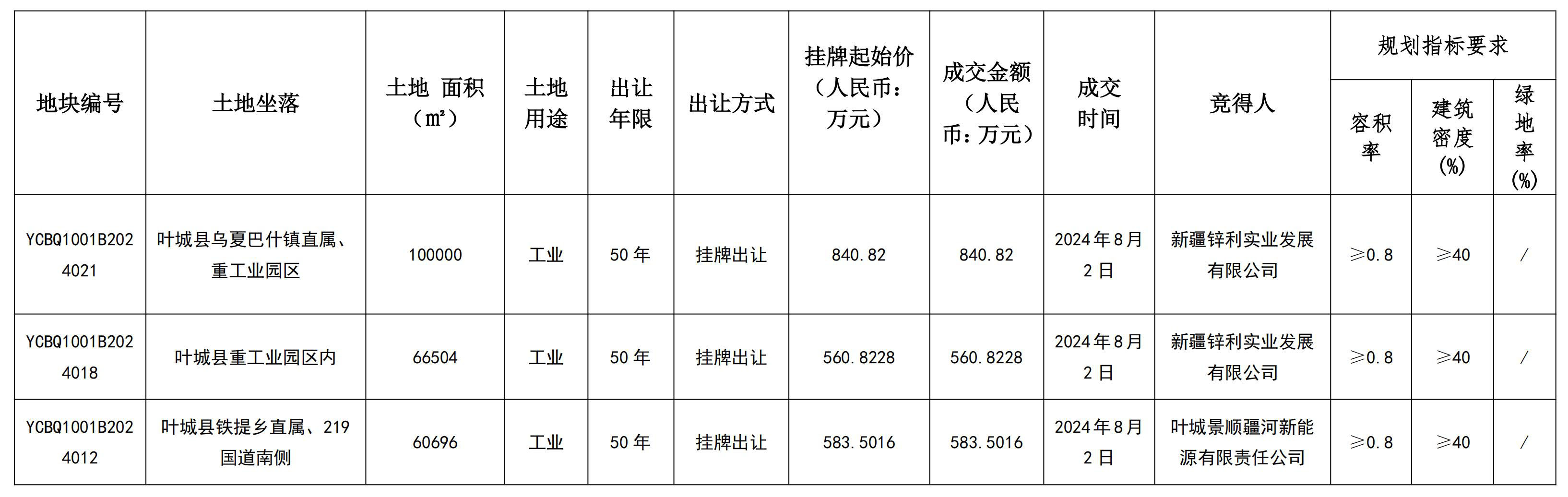 葉城縣自然資源局國有建設(shè)用地使用權(quán)掛牌出讓成交結(jié)果公示