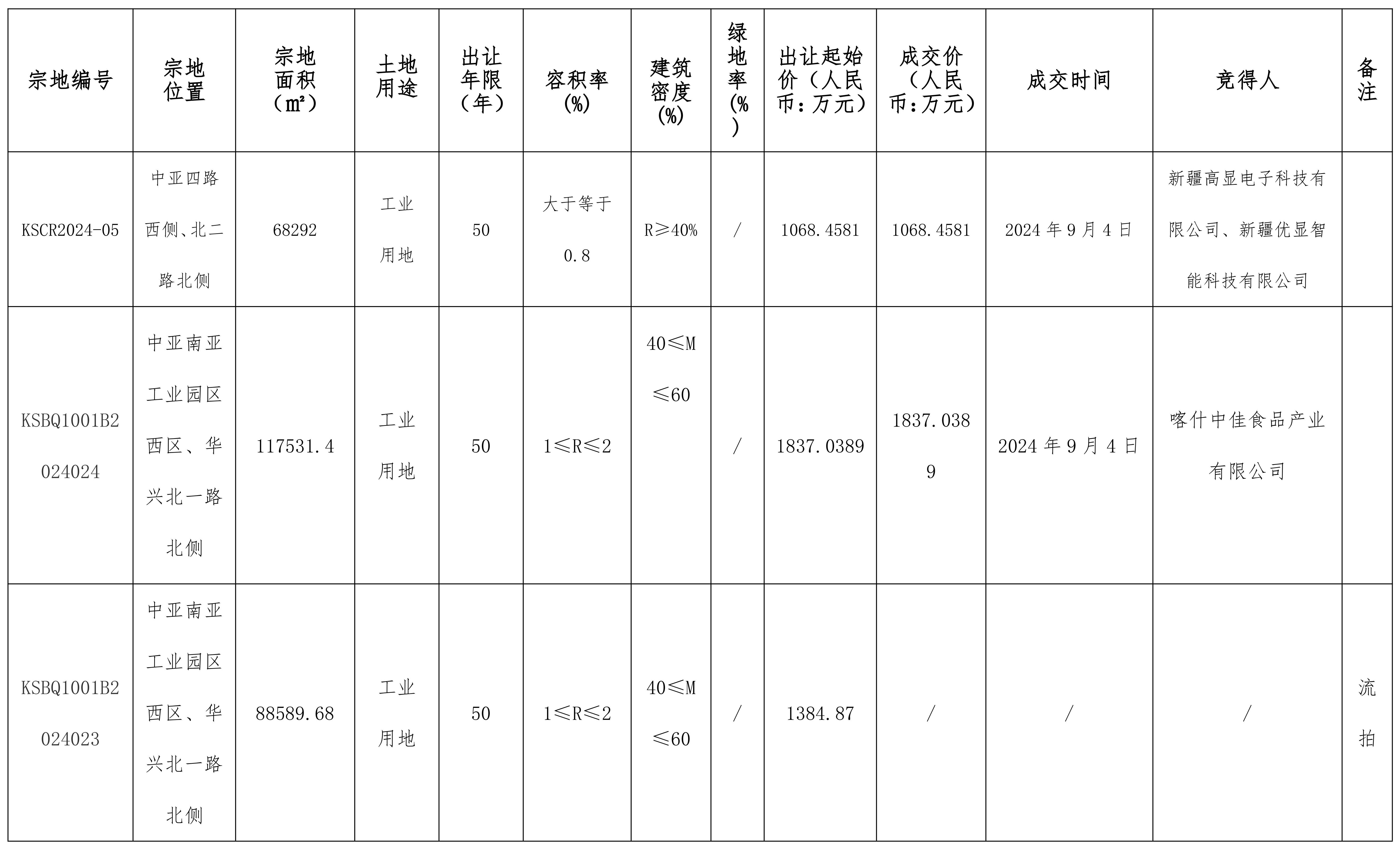 根據(jù)《中華人民共和國(guó)土地管理法》《招標(biāo)拍賣(mài)掛牌出讓國(guó)有建設(shè)用地使用權(quán)規(guī)定》(國(guó)土資源部令第39號(hào))《自治區(qū)深化公共資源交易平臺(tái)整合共享工作方案〉的通知》(新政辦函〔2019〕250號(hào))等有關(guān)法律法規(guī)及文件的規(guī)定,喀什市自然資源局以掛牌方式出讓3(幅)地塊的國(guó)有建設(shè)用地使用權(quán),現(xiàn)將出讓成交結(jié)果公示如下: