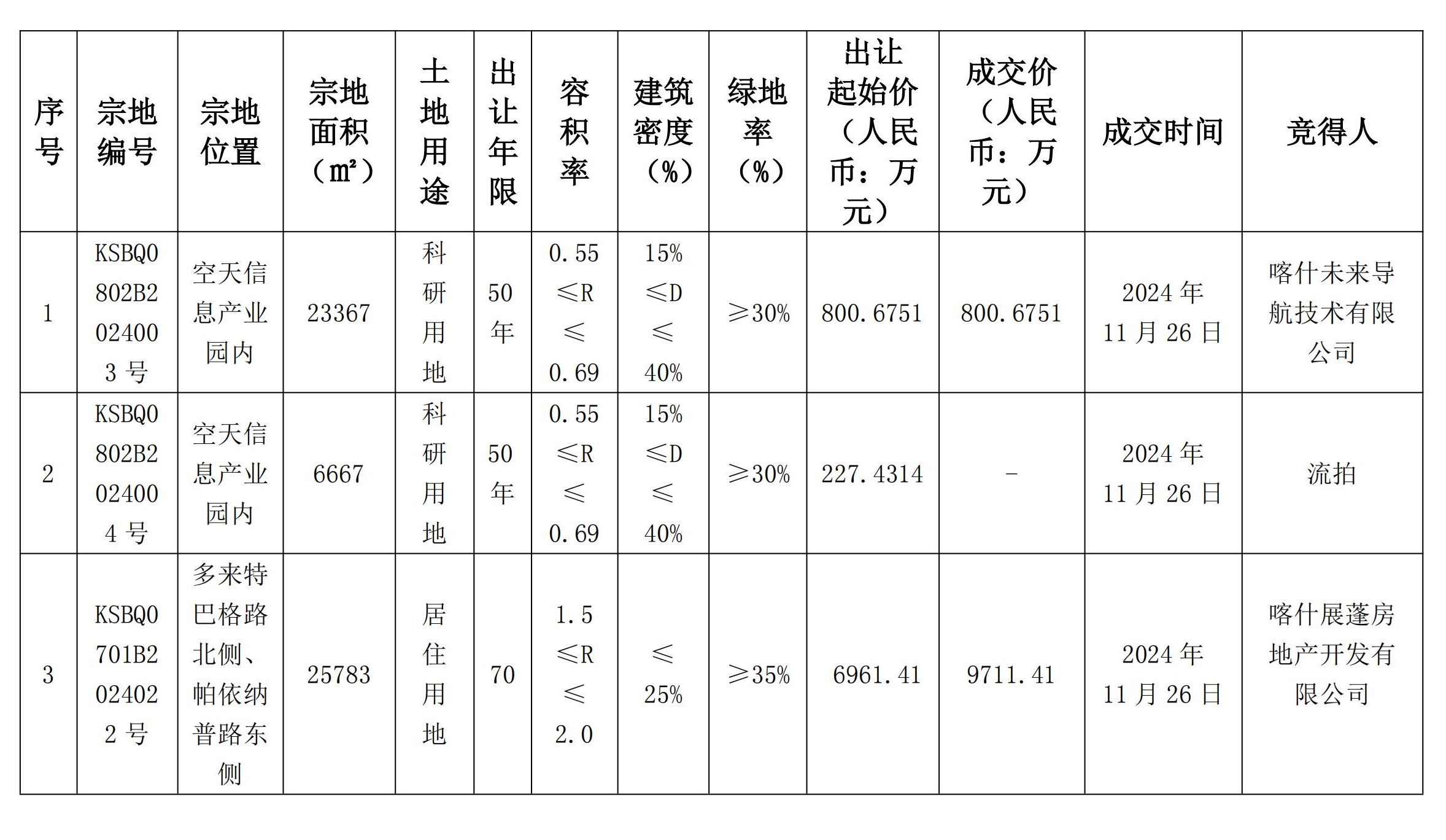 喀什市自然資源局國有建設(shè)用地使用權(quán)成交結(jié)果公示