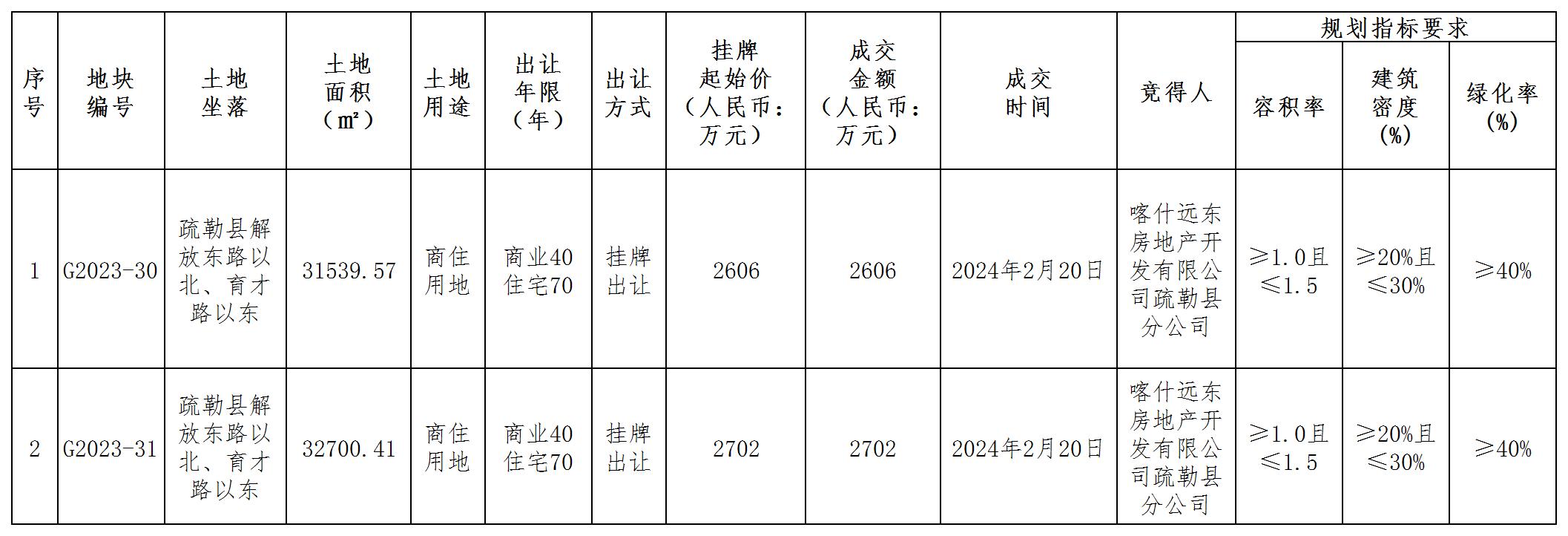 疏勒縣自然資源局國有建設(shè)用地使用權(quán)成交結(jié)果公示