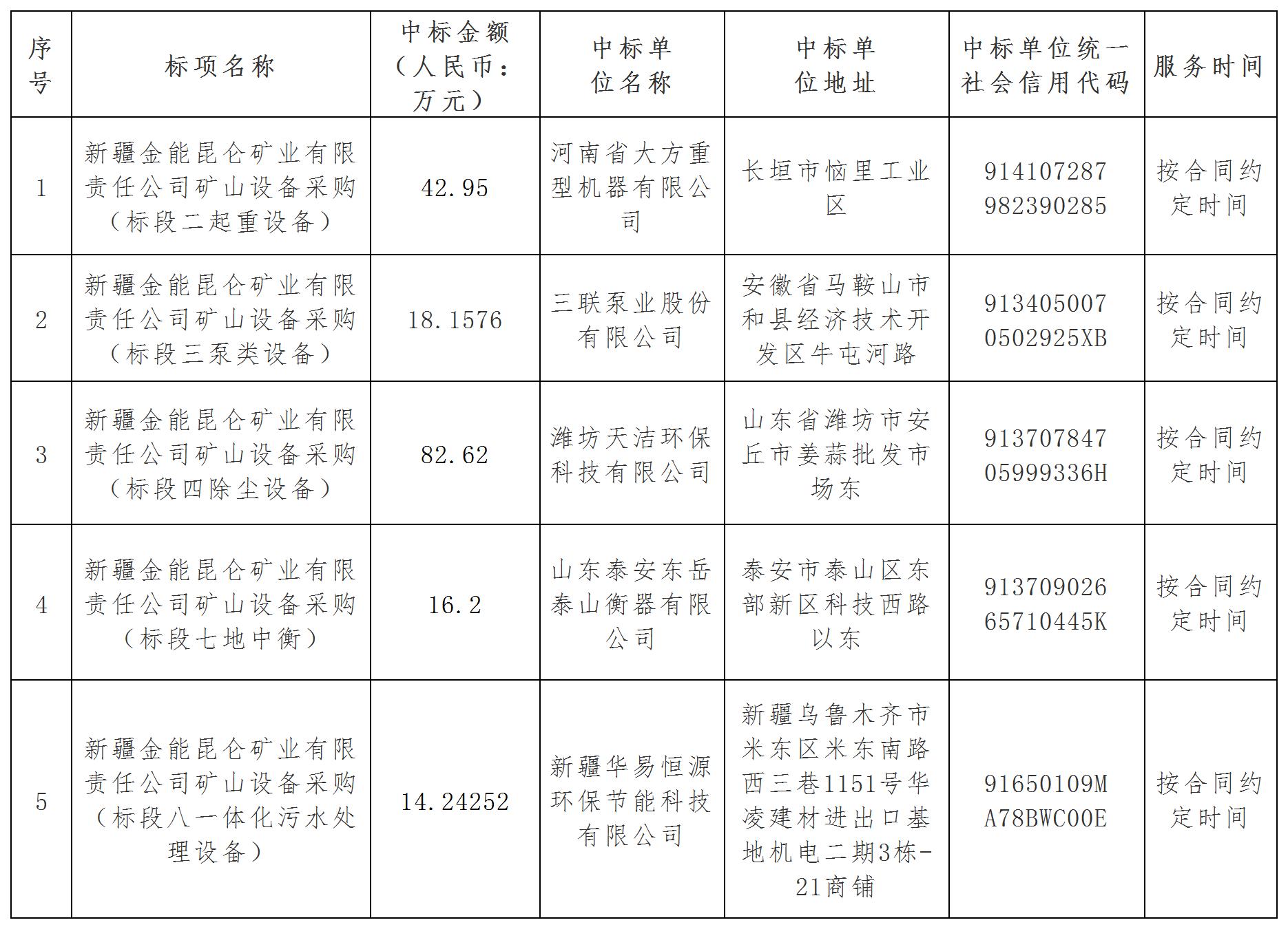 二、項(xiàng)目名稱(chēng):新疆金能昆侖礦業(yè)有限責(zé)任公司礦山設(shè)備采購(gòu)項(xiàng)目