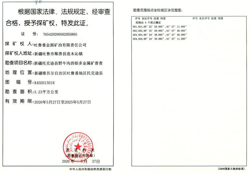 新疆烏恰縣金銅礦探礦權轉(zhuǎn)讓公告