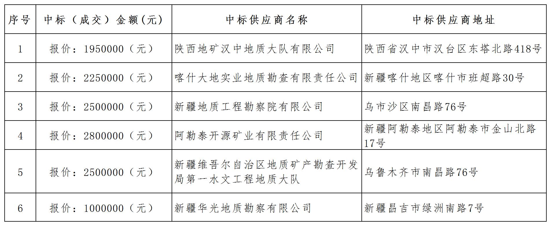 1.中標結(jié)果: