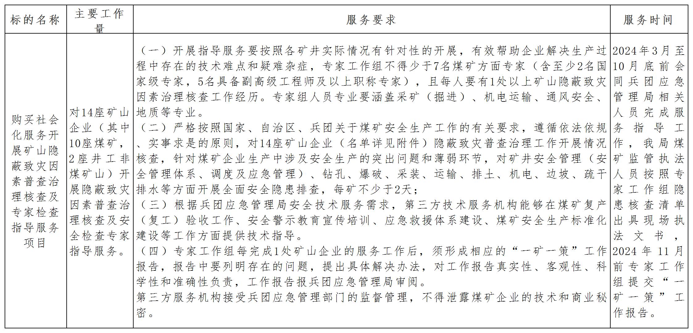 二、項(xiàng)目名稱:購(gòu)買(mǎi)社會(huì)化服務(wù)開(kāi)展礦山隱蔽致災(zāi)因素普查治理核查及專家檢查指導(dǎo)服務(wù)項(xiàng)目