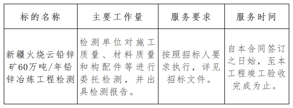 二、項(xiàng)目名稱(chēng):新疆火燒云鉛鋅礦60萬(wàn)噸/年鉛鋅冶煉工程檢測(cè)