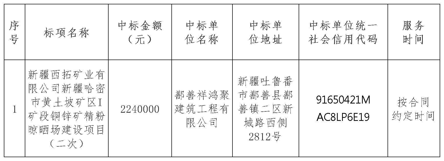 二、項(xiàng)目名稱:新疆西拓礦業(yè)有限公司新疆哈密市黃土坡礦區(qū)I礦段銅鋅礦精粉晾曬場(chǎng)建設(shè)項(xiàng)目(二次)